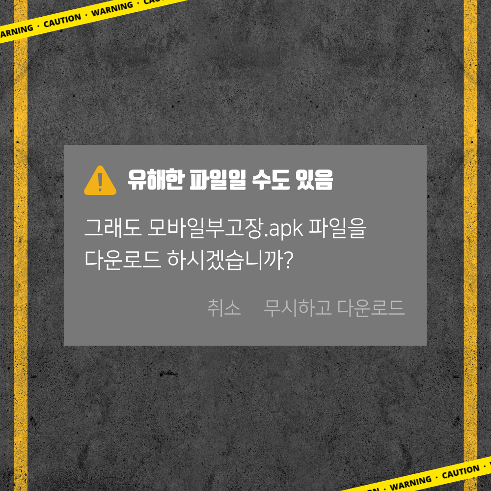 apk 확장자의 자료를 내려받도록 유도하고 있는데요. 이것은 해킹 시도일 가능성이 매우 크므로 절대로 파일을 저장 및 실행해서는 안 됩니다. 그렇다면 해당 확장자는 무엇이며 어째서 해킹을 암시하는지 이어서 알아보도록 하겠습니다.