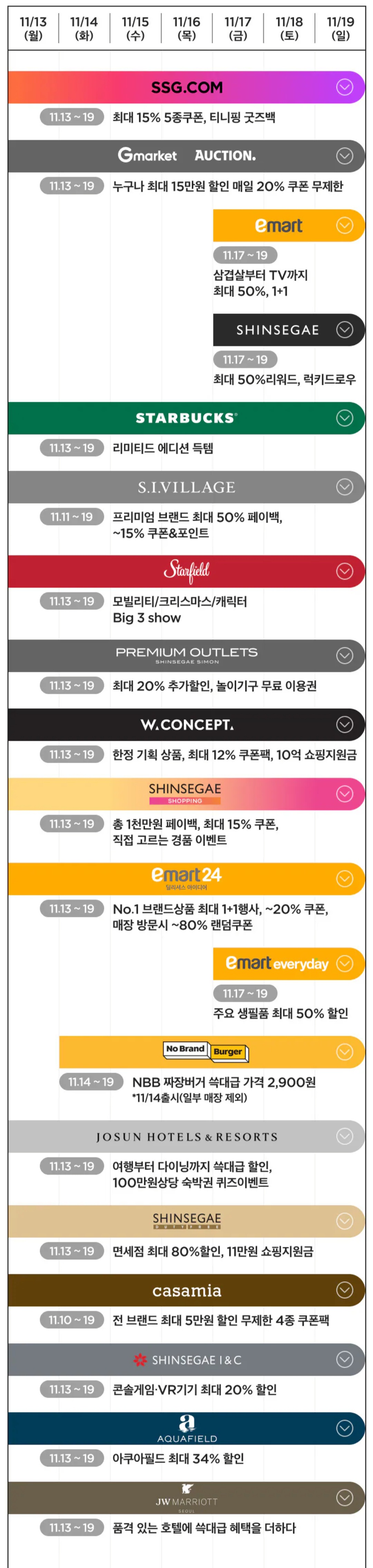 2023년 신세계 쓱데이 행사는 지난 11월 13일부터 19일까지 7일간 진행되는데요. 그룹 측에서는 이미 일정이 시작된 계열사들의 '출발이 좋다'며 초반 실적을 발표하기도 했어요. 온라인 몰의 타임딜이 완판되고, 매출과 회원수도 급증했다고 하네요.